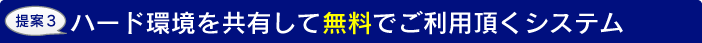 - サーバー等ハード機器、ソフトを共有するシステムです、サーバー等関連機器の独自での構築は行いません。